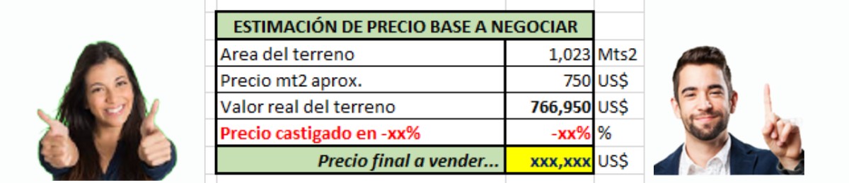 Se trata de un área de terreno muy apropiado para planificar un buen proyecto inmobiliario, y para tal propósito, nuestra propuesta considera éste cuadro sinóptico, que incluye un descuento del -xx% como cantidad a negociar para acordar la venta del terreno, y estaremos atentos a la recepción de la mejor propuesta con la que cada interesad@ pretenda adjudicarse éste terreno.