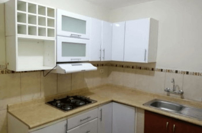 - Cocina con muebles altos y bajos, cocina encimera y extractor